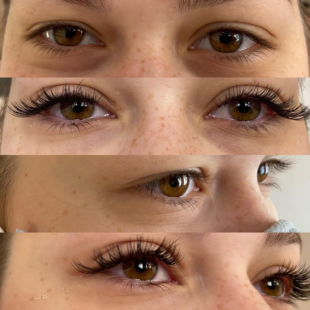 La pose du rehaussement de cils se réalise sur une table d’esthétique, yeux fermés.